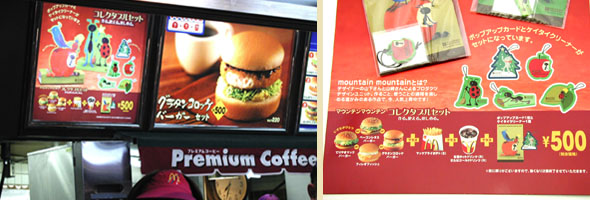 マクドナルドのクリスマスキャンペーン2002としてハンバーガーなどとセットのマウンテンマウンテン・コレクタブルセットが登場。ポップアップカード(全2種)+ケイタイクリーナー(全5種)を製作しました。